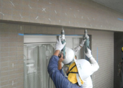 タイルや塗装の下の、コンクリート部分のことを『躯体(くたい)』と総称します。この工事では、建物調査によって確認された劣化(ひび割れ、鉄筋爆裂、欠損、漏水箇所)の補修を行います。 皆様の大切な財産の維持・保全にかかわる、最も重要な工事のひとつです。